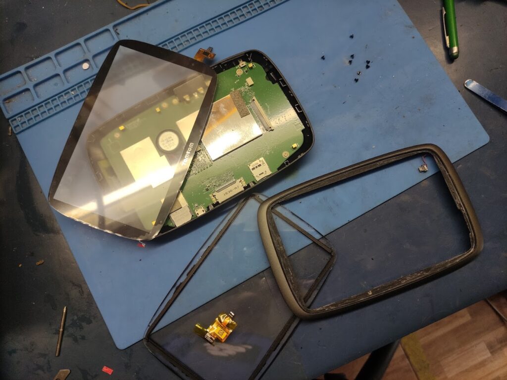 Okazało się, że w tym urządzeniu dotyk odklejał się od ramki w rezultacie odrywając taśmę flex służącą do przesyłania sygnałów. Naszym zadaniem była wymiana wadliwego elementu na nowy oraz aktualizacja map, oraz fotoradarów do najnowszej wersji.